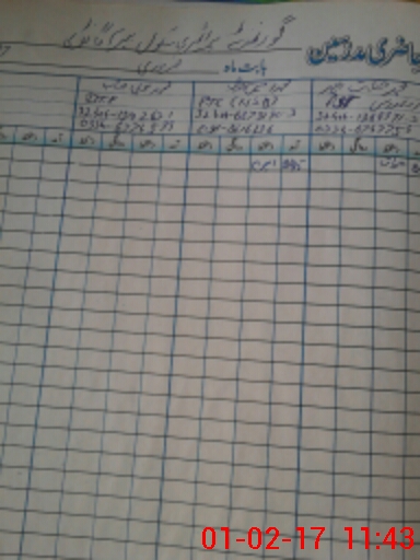 | CNIC | Full Name | Designation | R/C | Absence During Last Calender Month |