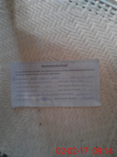 | Attendance Register | Head Teacher | MEA with School | Visit Proof |