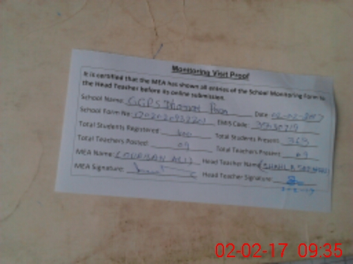 | Attendance Register | Head Teacher | MEA with School | Visit Proof |