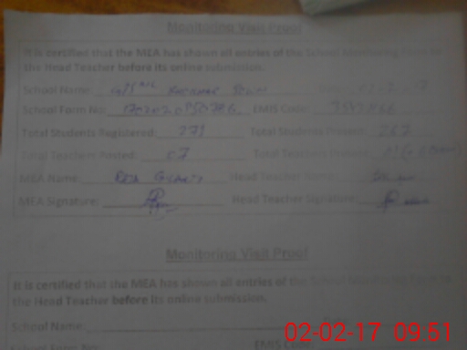 | Attendance Register | Head Teacher | MEA with School | Visit Proof |