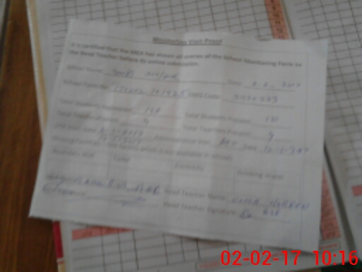 | Attendance Register | Head Teacher | MEA with School | Visit Proof |