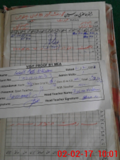 | Attendance Register | Head Teacher | MEA with School | Visit Proof |