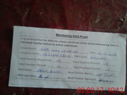 | Attendance Register | Head Teacher | MEA with School | Visit Proof |