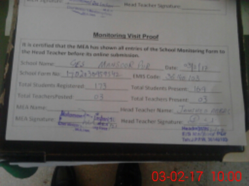 | EMIS Code: 36140103 | Name of School: GES MANSOOR PUR MOUZA MANSOOR PUR TAH. JALALPUR PIRWALA | |||