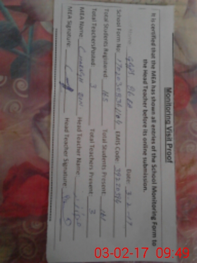 | Attendance Register | Head Teacher | MEA with School | Visit Proof |