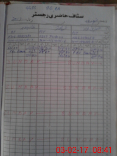 | CNIC | Full Name | Designation | R/C | Absence During Last Calender Month |
