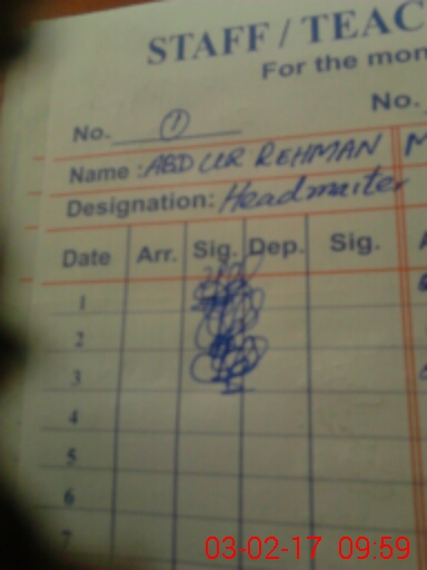 | Name: Ab**** Re**** Designation: (School Headmaster's/Headmistress's) Head Master Phone/Cell Number: 03**** |