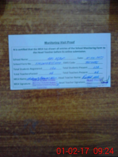 | Certified that this School was Inspected by the Undersigned MEA/DMO Today and the Information Stated Above is as Per Record. | |||||