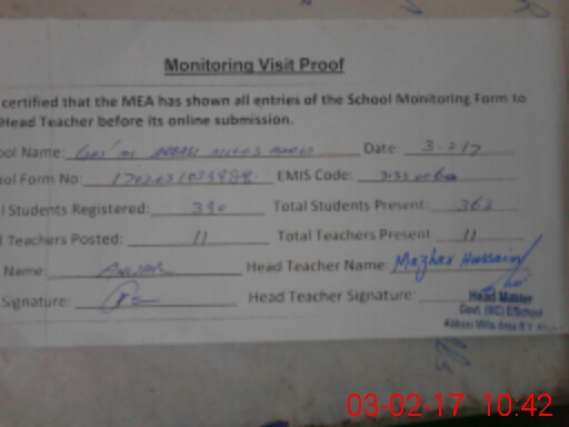 | EMIS Code: 31330060 | Name of School: GHS MC ABBASI MILLS AREA | |||