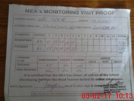 | Attendance Register | Head Teacher | MEA with School | Visit Proof |