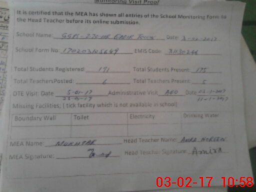 | Certified that this School was Inspected by the Undersigned MEA/DMO Today and the Information Stated Above is as Per Record. | |||||