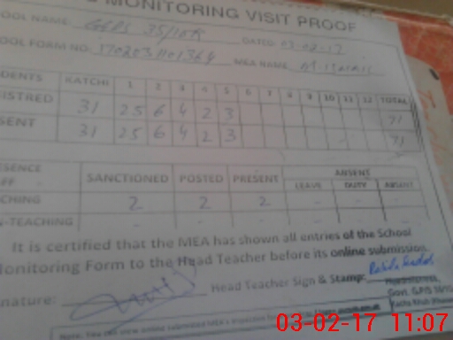 | Attendance Register | Head Teacher | MEA with School | Visit Proof |