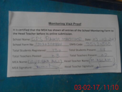 | EMIS Code: 35430565 | Name of School: GPS RAKH MACHIKE SADAR | |||