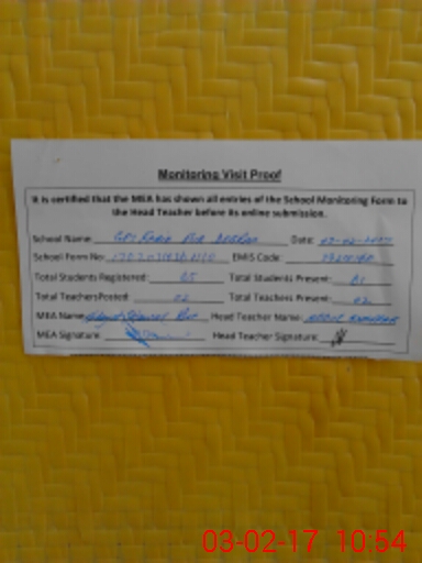 | Attendance Register | Head Teacher | MEA with School | Visit Proof |
