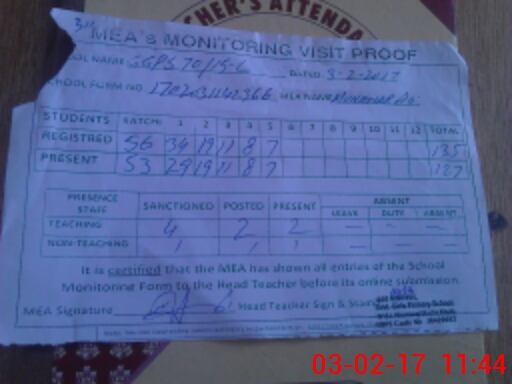 | Attendance Register | Head Teacher | MEA with School | Visit Proof |