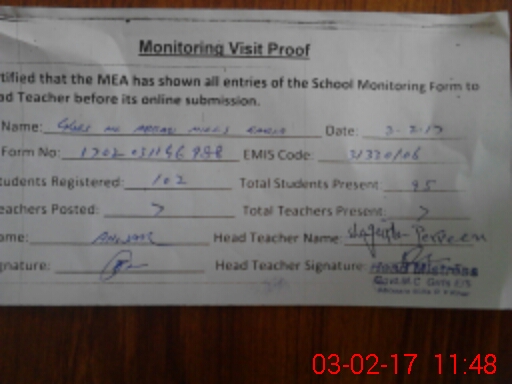 | Certified that this School was Inspected by the Undersigned MEA/DMO Today and the Information Stated Above is as Per Record. | |||||