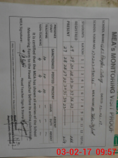 | Monitoring Date: 03-02-2017 | Start Time: 03-02-2017 09:10 AM | End Time: 03-02-2017 09:57 AM | Name of MEA: M.Ta**** Iq**** (S**** | |