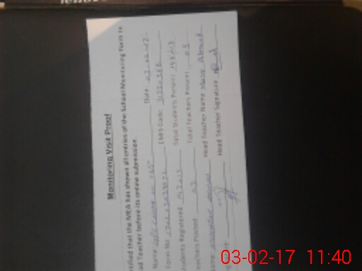 | Attendance Register | Head Teacher | MEA with School | Visit Proof |