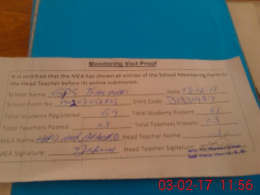 | Attendance Register | Head Teacher | MEA with School | Visit Proof |