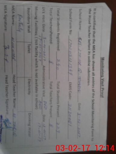 | Certified that this School was Inspected by the Undersigned MEA/DMO Today and the Information Stated Above is as Per Record. | |||||