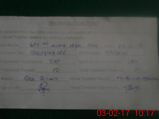 | Attendance Register | Head Teacher | MEA with School | Visit Proof |