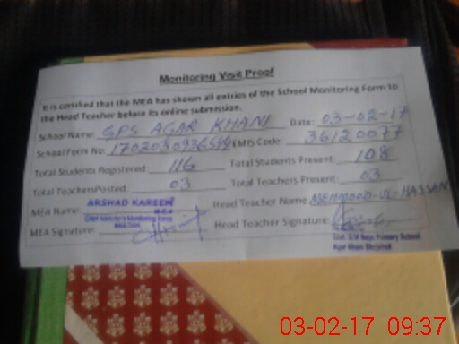 | EMIS Code: 36120077 | Name of School: GPS AGAR KHANI P.O AGAR KHANI MOZA RUKKAN HATI | |||