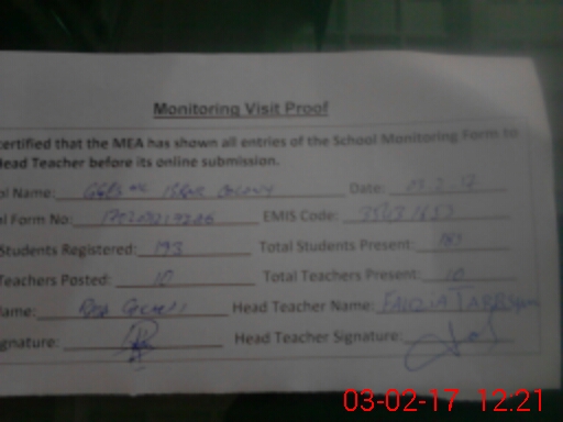 | EMIS Code: 35431153 | Name of School: GGES MC ISRAR COLONY | |||