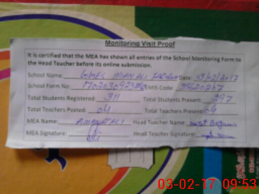 | Certified that this School was Inspected by the Undersigned MEA/DMO Today and the Information Stated Above is as Per Record. | |||||