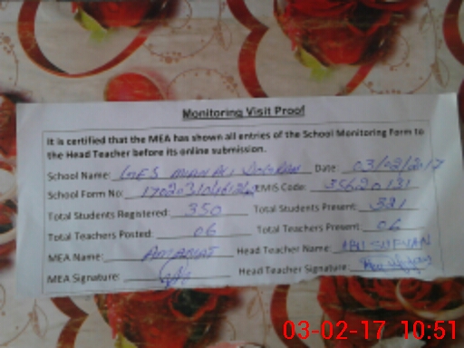| Certified that this School was Inspected by the Undersigned MEA/DMO Today and the Information Stated Above is as Per Record. | |||||