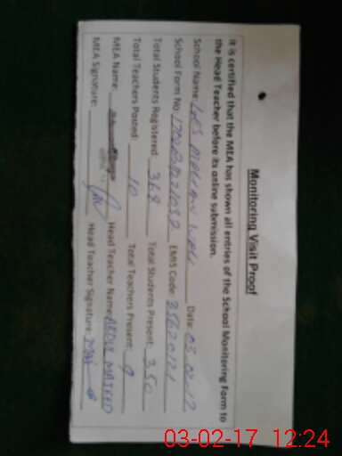 | Certified that this School was Inspected by the Undersigned MEA/DMO Today and the Information Stated Above is as Per Record. | |||||