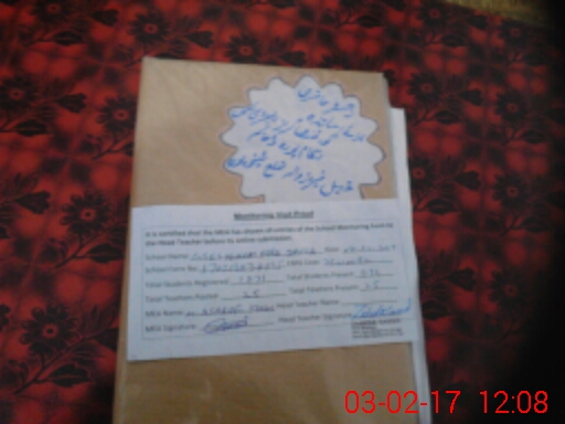 | School Visited by School Health & Nutrition Supervisor (No. of Visits) | 3 | Name1: | Sitwat Bibi | Name2: | Nil |