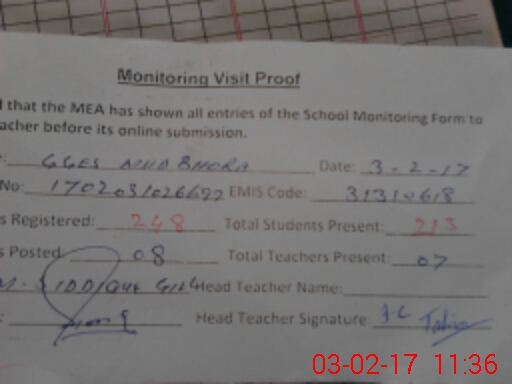 | Certified that this School was Inspected by the Undersigned MEA/DMO Today and the Information Stated Above is as Per Record. | |||||