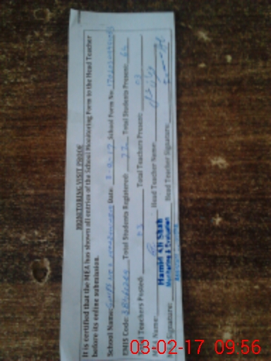 | Attendance Register | Head Teacher | MEA with School | Visit Proof |