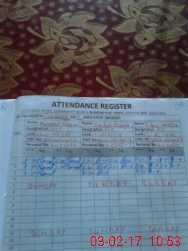 | Name: IR**** NO**** Designation: (School Headmaster's/Headmistress's) SST Phone/Cell Number: 03**** |