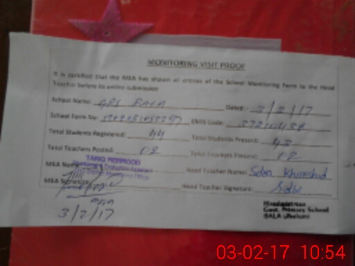 | Certified that this School was Inspected by the Undersigned MEA/DMO Today and the Information Stated Above is as Per Record. | |||||