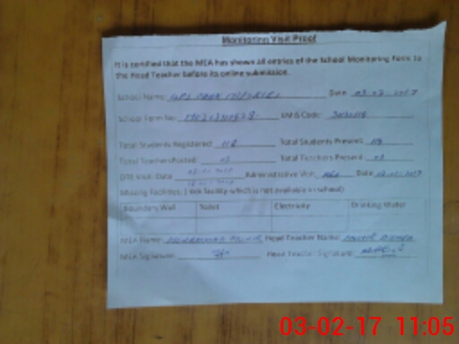 | Attendance Register | Head Teacher | MEA with School | Visit Proof |