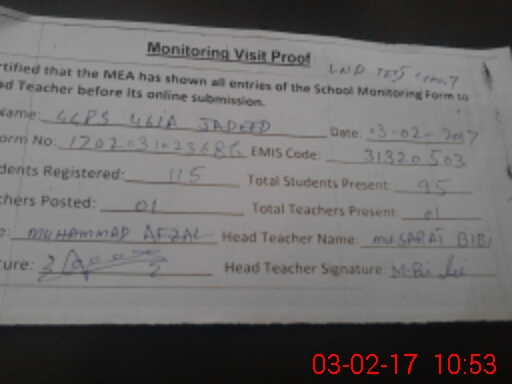 | Certified that this School was Inspected by the Undersigned MEA/DMO Today and the Information Stated Above is as Per Record. | |||||