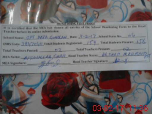 | EMIS Code: 38470411 | Name of School: GPS DERA GONDLAN | |||