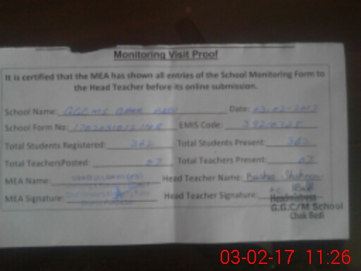 | EMIS Code: 39210365 | Name of School: GGCMS CHAK BEDI | |||