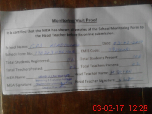 | EMIS Code: 39210081 | Name of School: GPS ASADULLAH PUR | |||
