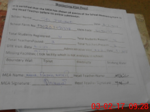 | Attendance Register | Head Teacher | MEA with School | Visit Proof |
