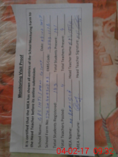 | Attendance Register | Head Teacher | MEA with School | Visit Proof |