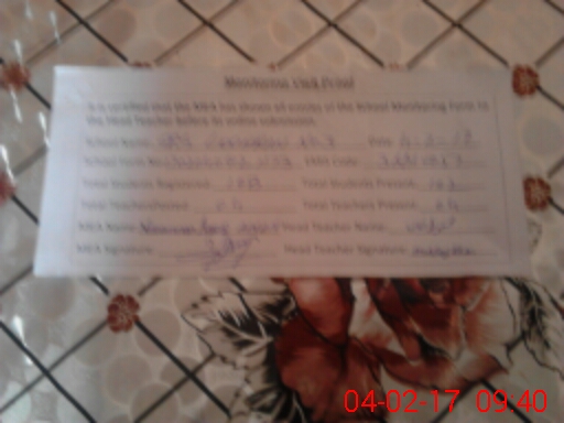 | Attendance Register | Head Teacher | MEA with School | Visit Proof |
