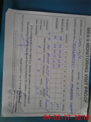 | Attendance Register | Head Teacher | MEA with School | Visit Proof |