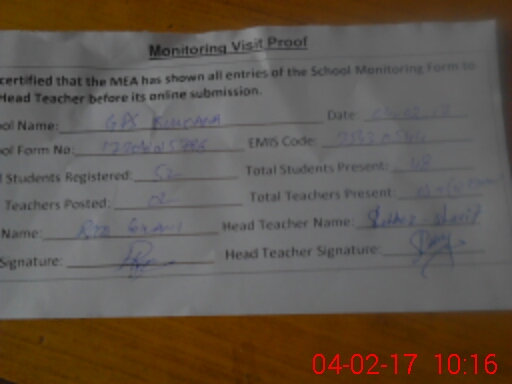 | Certified that this School was Inspected by the Undersigned MEA/DMO Today and the Information Stated Above is as Per Record. | |||||