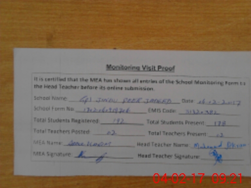 | EMIS Code: 31320382 | Name of School: GPS JINDU PEER JADDED | |||