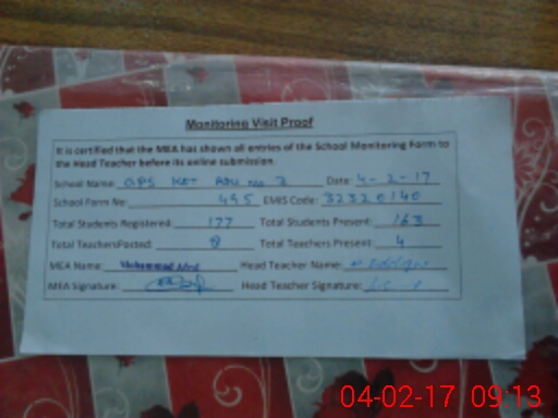 | EMIS Code: 32320140 | Name of School: GPS KOT ADU NO. 3 | |||