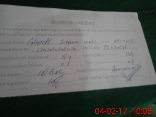 | Attendance Register | Head Teacher | MEA with School | Visit Proof |