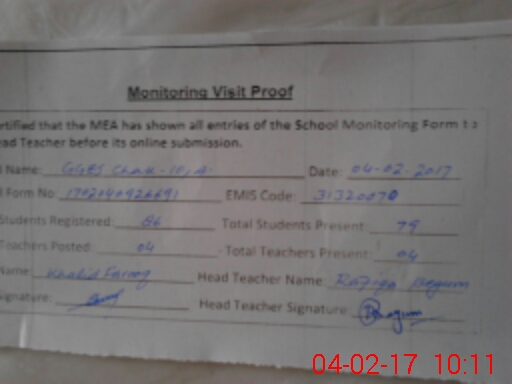 | EMIS Code: 31320070 | Name of School: GGES CHAK NO. 10/A | |||
