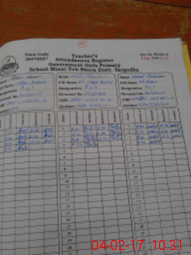 | District: SARGODHA | Tehsil: BHERA | Markaz: MIANI - FEMALE | Level: Primary | |